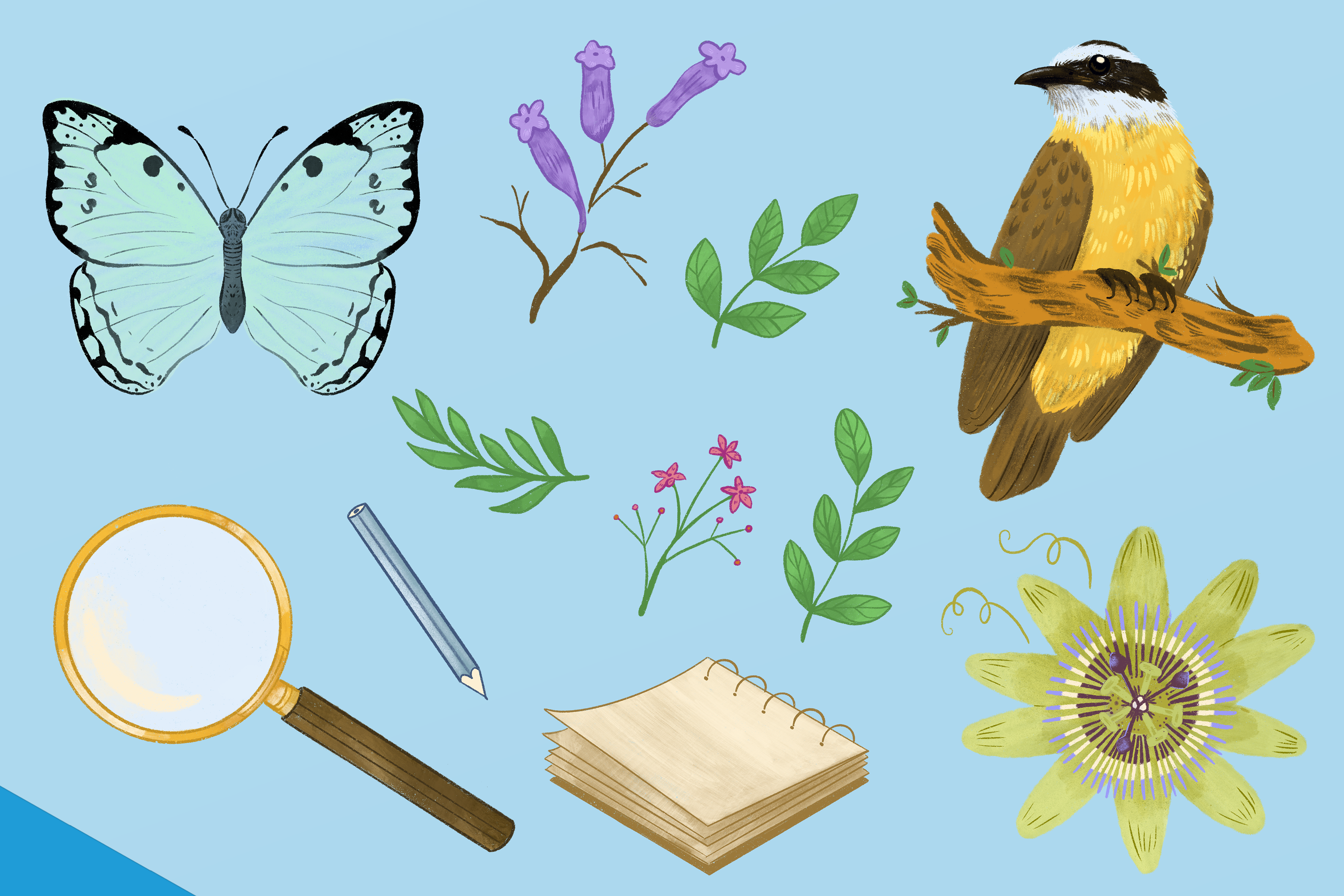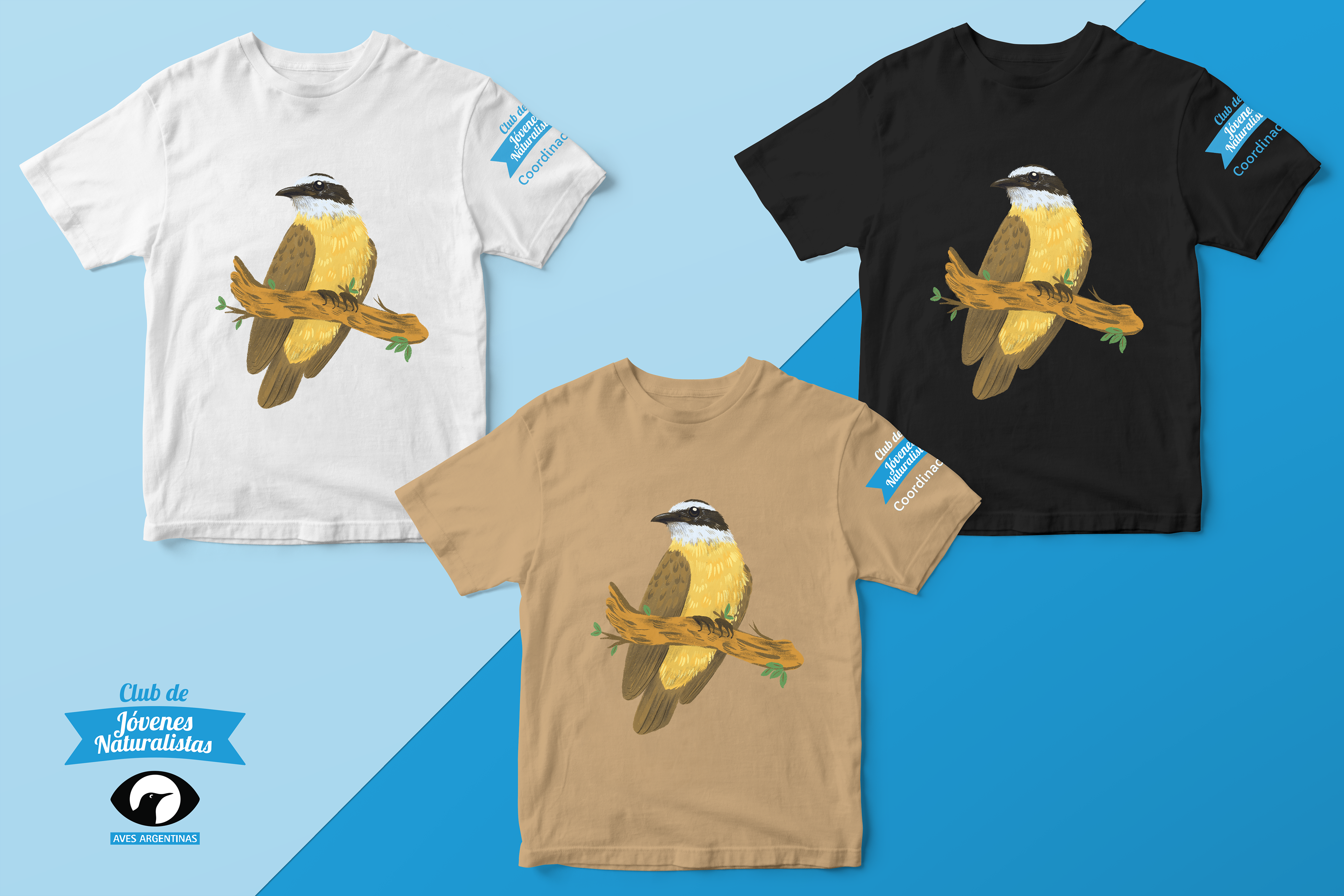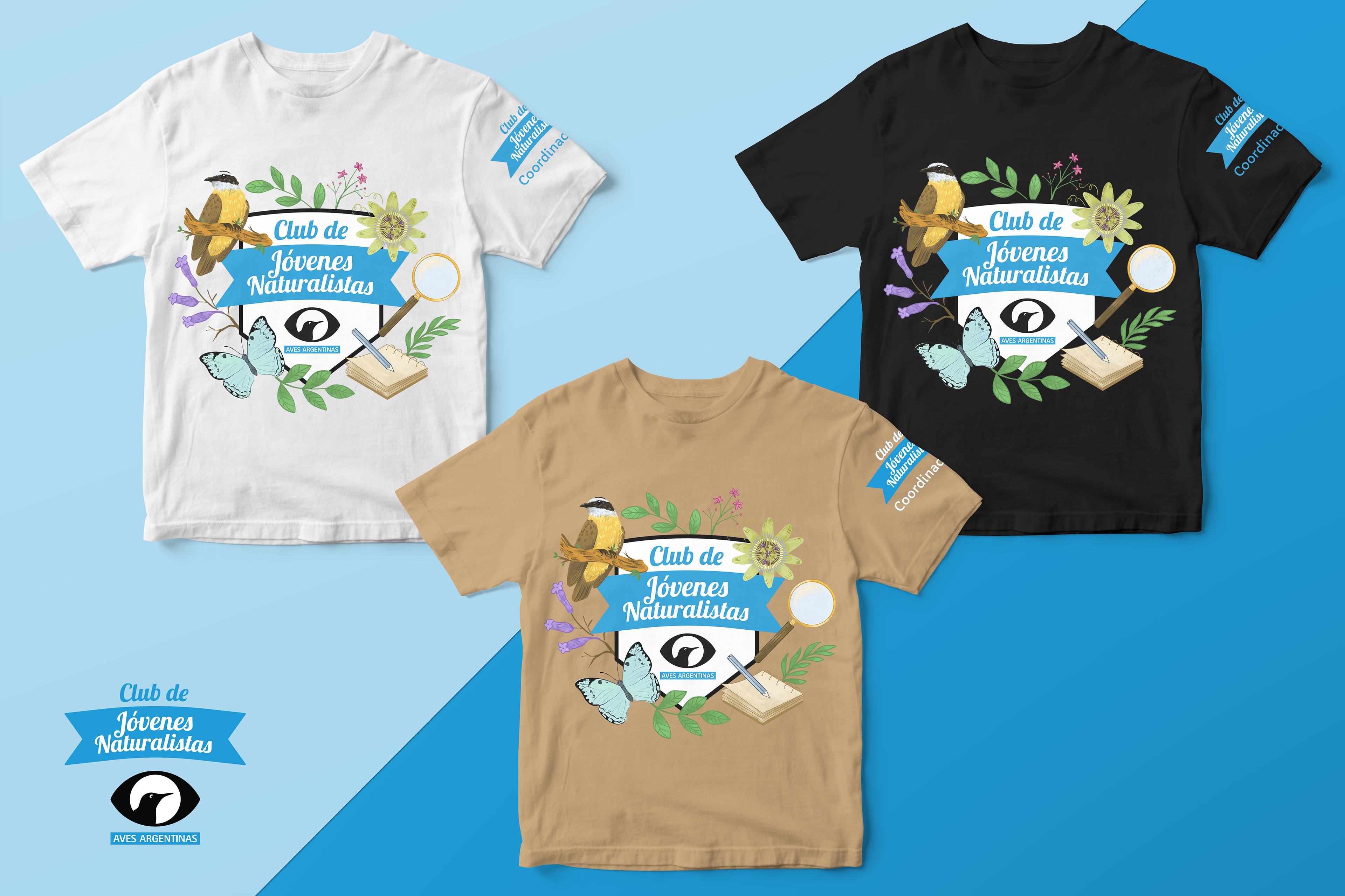 Ilustraciones para el Club de Jóvenes Naturalistas (CJN) de Aves Argentinas. Aplicaciones en remeras, totes y estampas para su utilización en las diversas actividades de educación ambiental que lleva adelante el CJN para niños, niñas y jóvenes de 7 a 17 años en Buenos Aires.
