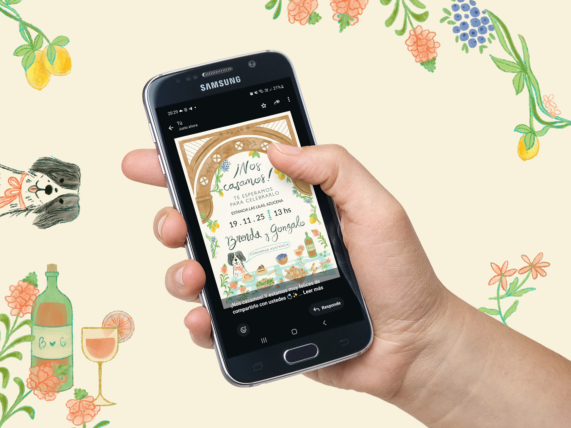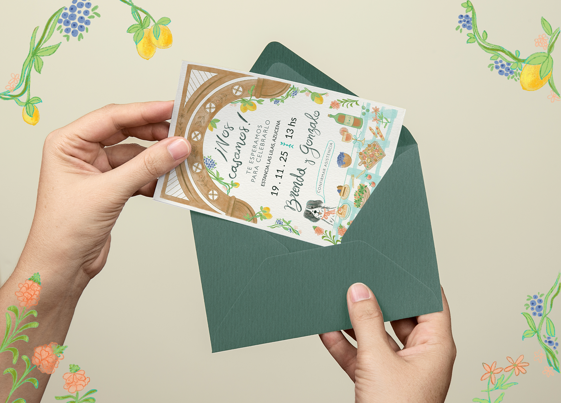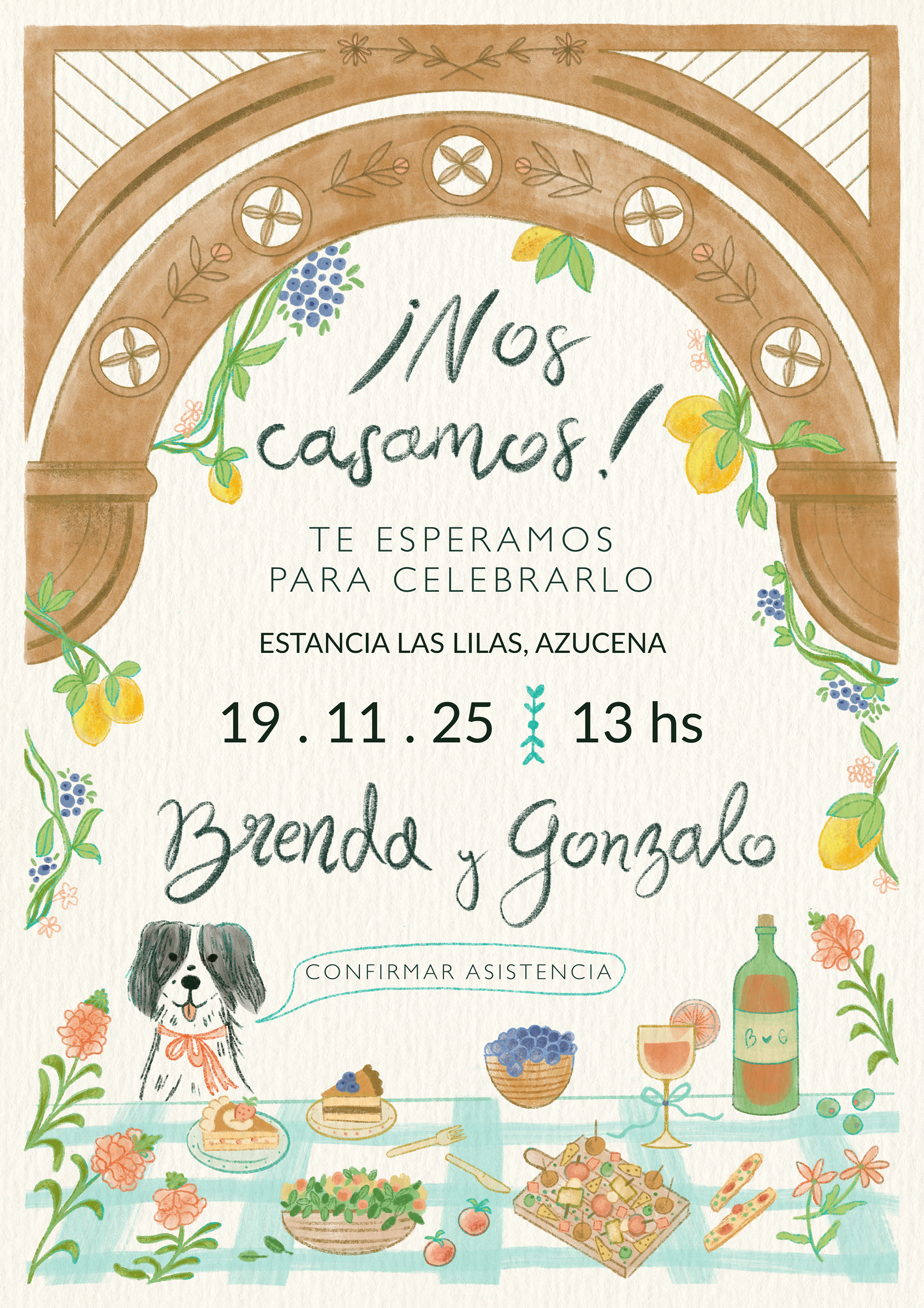 Invitación ilustrada de boda
